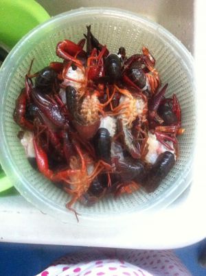 龙虾买回来后我有个习惯,拿个大盆用水养,一两个小时换次水。养一个晚上,第二天用刷子把虾一只只刷干净。再把虾头去掉。