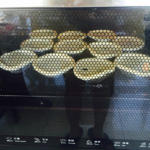 ④这个时候提前预热的烤箱可以上场了,送入烤箱200℃约20~25分针,每个烤箱的脾气都不一样,我用一个烤箱25分钟烤得正正好,另一个烤箱20分钟就极限了,所以时刻盯着点。