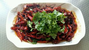 大火开锅之后转文火炖15分钟左右。放入鸡精、味达美少许。出锅,装盘,撒上香菜叶做点缀!一份香辣小龙虾做好了!