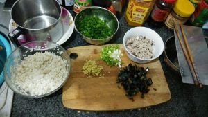 一切准备材料就绪(ps:香菇和肉末在开水里过一下)