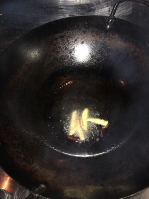 锅烧热放入姜、八角、放一个干辣椒、八角和辣椒炒出香捞出来不要
