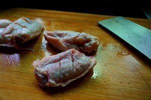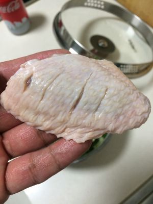 买回来的鸡翅彻底解冻好,用温水冲洗干净血水