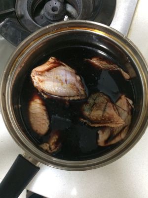 最后可乐汁水几乎烧完,锅内呈略黏稠状,关火。
