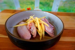 加入切好的细姜丝和料酒抓匀腌制十分钟左右