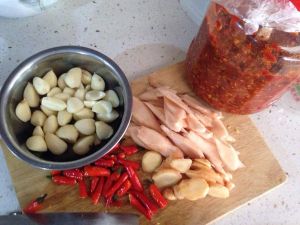 把泡辣椒、泡姜放入油里翻炒