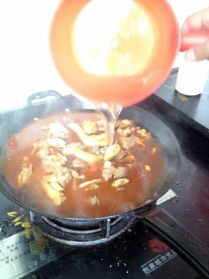 翻炒均匀后,放入水焖煮