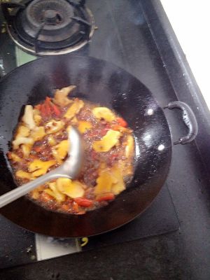 放入泡姜,翻炒。