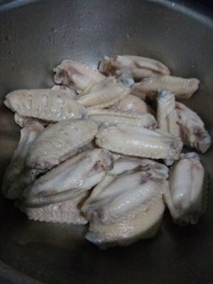 由于灯光的原因没有拍好请大家见谅。准备工作要把翅中用刀在两侧肉最后的地方划开小口,方便入味和熟。