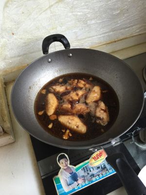 起油锅,放姜丝,鸡翅下去煎,也要翻面,怕糊了。不过本人很害怕热油,就活很小,胆大的把双面煎的焦黄即可。然后放入可乐,一定要没过鸡翅。我还放了颗话梅糖,味道还不错类,以前也放过陈皮糖,看个人口味吧。也可以放颗辣椒。