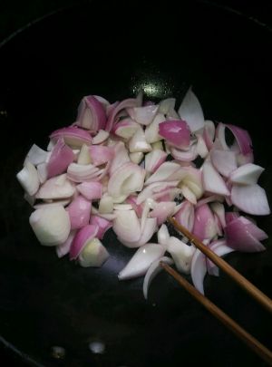 锅里再放少许油,待油热,放入洋葱,翻炒,