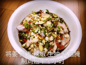 把蒜末姜生抽辣椒料酒腌制鸡翅半个小时 等会做鸡翅不用加盐了