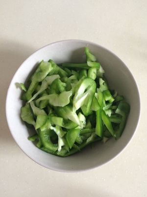 甜椒切丝!貌似有点切粗了!1个人的份量!