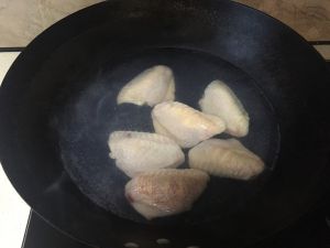 烧水,水开后放入鸡翅,约一分钟,待鸡翅皮发白,没有红色时关火。取出鸡翅,过凉水。