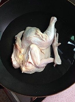 上锅入适量清水,鸡洗干净凉水入锅,盖上锅盖煮至鸡熟,大约15分钟左右。