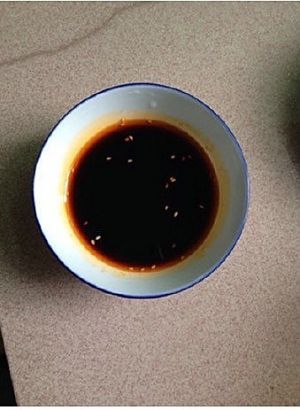 取个干净的碗,加入生抽4汤勺,辣椒油1勺,醋1汤勺,香油1勺,适量盐。