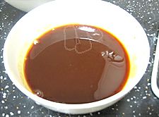 把调味汁倒入,快速搅匀,成粘稠芡汁