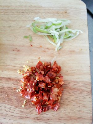 葱和干辣椒备好,家里没蒜了就没放,可以根据自己喜好加上蒜也可以的