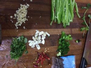 各种辅料,我把蒜分成了两份,一份蒜片爆锅,一份蒜末出锅时放入