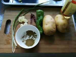将葱干辣椒姜蒜爆锅后 放入花椒粉 放入土豆丝快速翻炒 边翻炒边放入盐 适量香醋 出锅