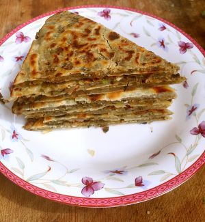 出锅的时候注意,这个时候的饼会非常酥脆,一定要用锅铲轻轻的拿出来,或者直接用平底锅将饼倒在案板上,稍凉一下装盘,不然饼太热摞在一起就会闷软哦,好啦,品尝一下吧,非常香酥可口。