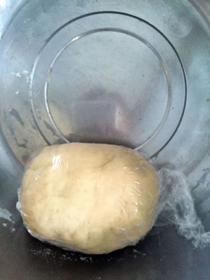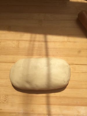 醒发好的面团会像这样,表面有淡淡油光,而且非常软,因为上一步骤的水和油比较多,所以容易擀制成饼