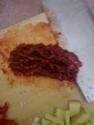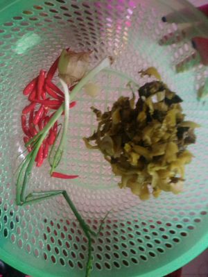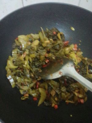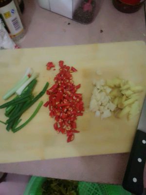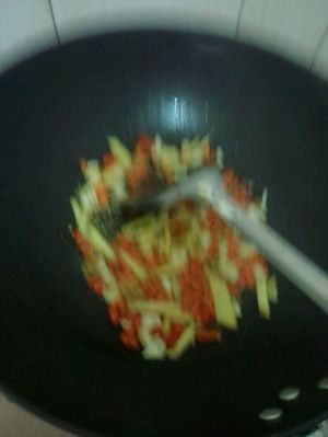 然后把姜蒜辣椒放进去爆炒再加入豆瓣翻炒