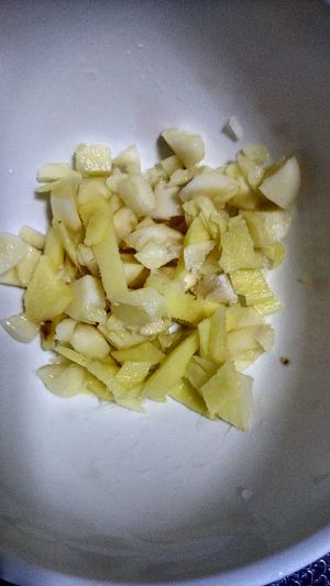 酸菜切丝,蒜片,小米椒切小粒,姜丝,葱末