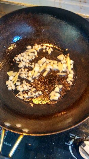 锅底放适量油,将姜蒜爆香,然后将鱼骨煎一下。
