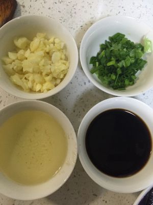 趁煮排骨的时间准备蒜头,葱末,冰糖浆,陈醋。糖浆和醋的比例是1:1。