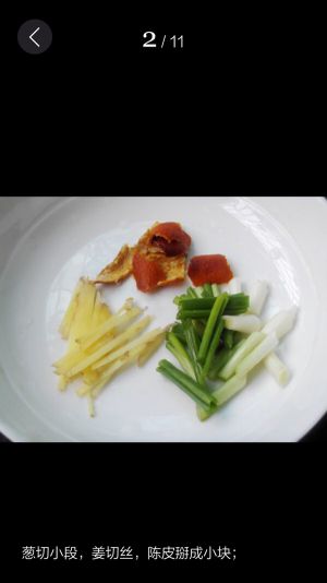 切葱切姜!!忽略那点陈皮。。图是我盗的。。想起来传菜谱的时候已经开始吃了。。葱姜炝锅。。就是锅热加油炒葱姜