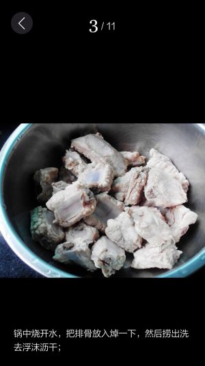 排骨冷水下锅,煮开,多煮一会,把血水煮出来,捞出来备用