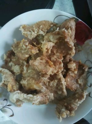 肉洗净,吸干水分,去筋膜,切2-3毫米厚片,加一半盐腌制 淀粉慢慢加水,和好的面糊提起有连续的流淌,每片肉都要裹满面糊,干炸里脊影响口感和卖相