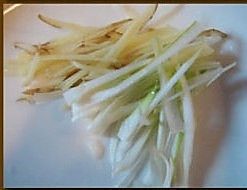 锅中留少许底油,下入葱、姜丝,下入肉片,烹入调汁,大火翻炒收汁即可。