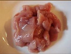 里脊肉切成均匀薄片,一毛钱硬币那么厚就可以,然后加水,加少量盐,加一点油抓匀,