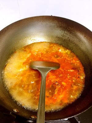 爆锅:油锅烧热放入一小把花椒和麻椒翻炒,再放入干辣椒翻炒,最后放入姜丝和蒜翻炒出香,加水煮沸。(花椒、麻椒、辣椒根据个人口味用,水不宜太多,够煮鱼就可以)