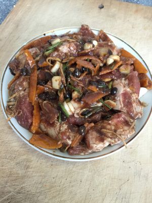 再加 豆豉 蒜蓉 姜蓉 拌匀.