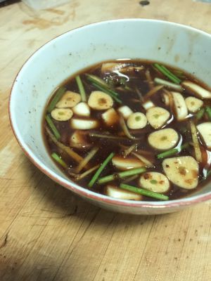 豆豉姜丝香菜梗放入小碗中准备调汁
