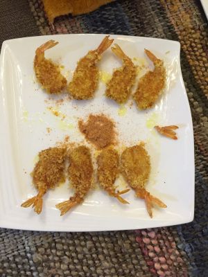 油锅加热,放入裹好面包糠的凤尾虾,记得翻转,炸到酥脆焦黄即可。