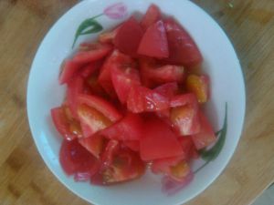 放入西红柿,盐,糖。翻炒至出汁就可以了!