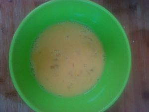 先把鸡蛋搅拌好,锅里放油,把鸡蛋炒好,盛出来。