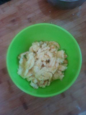 先炒鸡蛋,不宜炒的太熟,嫩点就好了,因为一会儿还要回锅。
