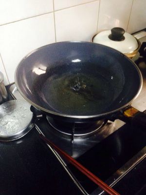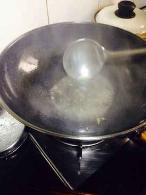 锅中留底油,倒入茶水半杯,加盐1克,调味。