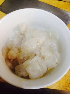 然后再次清洗干净,控干水,加盐1克,轻轻抓捏使虾仁起粘上劲。