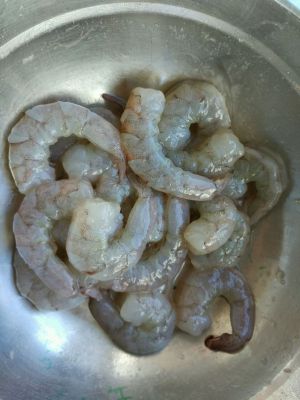 剥出虾仁,去除虾线,浸在水中30分钟。