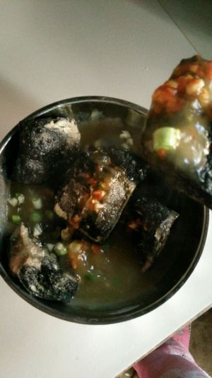 做法1:剁椒臭豆腐蒸目鱼蛋