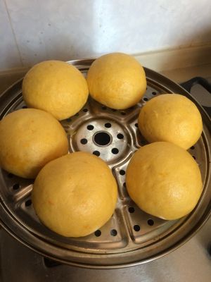 南瓜馒头蒸5-8分钟就好了,喜欢的朋友们动起手来。