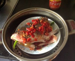 把炒好酱铺盖在鱼身,在继续蒸,10分钟即可!