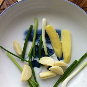 先说一下,我家勺子可能比较小。正文:鱼头去鳃、黑膜,洗净。葱姜切大片铺在盘底一层。