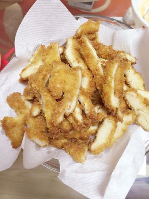 沾两次面包渣,会显得鸡肉片很厚实,口感也很好,