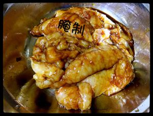 将鸡肉洗净片大片,用糖,盐,胡椒粉,料酒,腌渍入味,我一般是头天晚上腌,第二天做